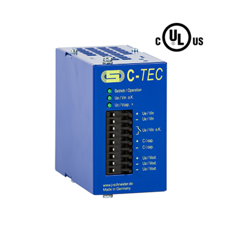 Die Geräte der C-TEC Reihe arbeiten mit Ultrakondensatoren im Gehäuseinneren als Energiespeicher. Bei einer Unterbrechung der DC-Versorgung wird die Energie der Ultrakondensatoren geregelt freigesetzt. Die Last wird vom Puffermodul gespeist, bis dieses entladen ist. Die Pufferzeit ist abhängig vom Ladezustand des Kondensators und vom Entladestrom