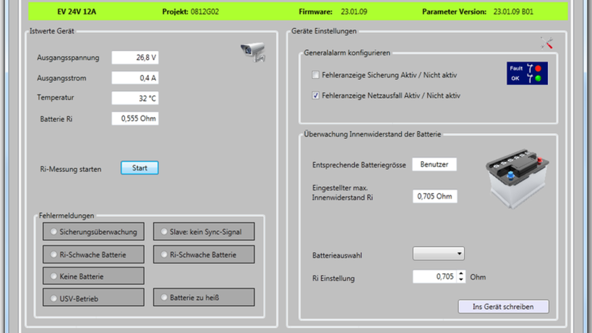 For specific adaptation to customer requirements and for status indication (voltage, current, fault).